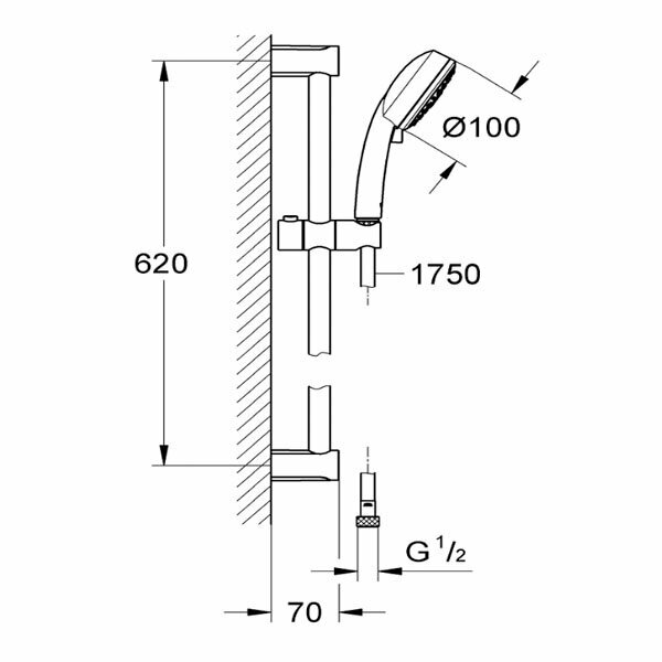 Душевой гарнитур GROHE New Tempesta Cosmopolitan 100 III, штанга 600 мм, 9,5 л/мин, хром (27579002)