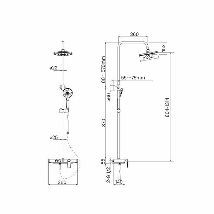 | Комплектация | душевая стойка - 1 шт. / верхний душ - 1 шт. / душевая лейка - 1 шт. / держатель для душа - 1 шт. / душевой шланг - 1 шт. / смеситель - 1 шт. / инструкция - 1 шт. |