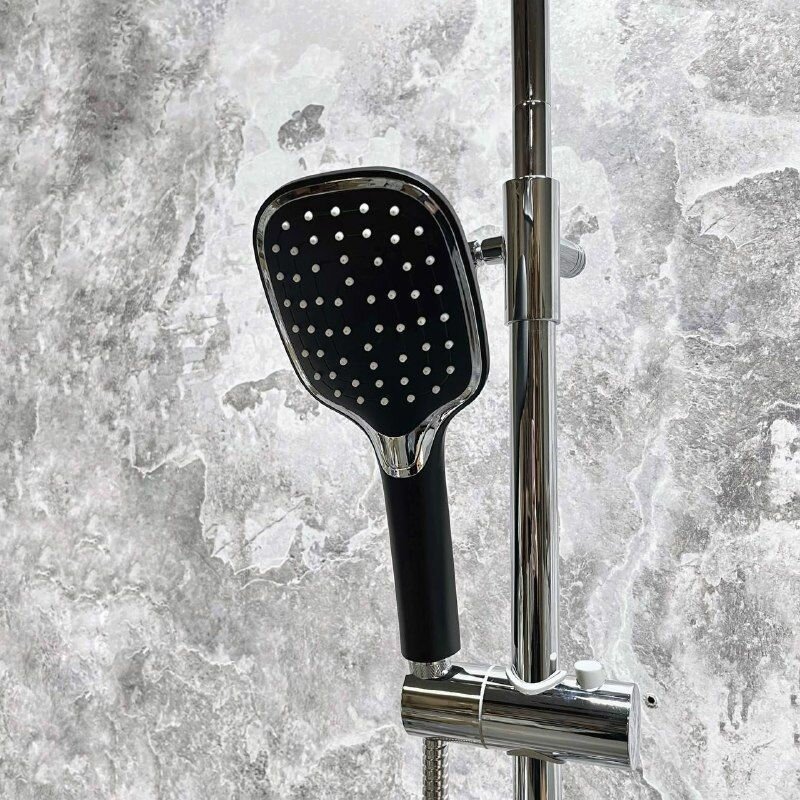 Душевая система Haiba HB24805-7 со смесителем, излив-переключатель на лейку,с верхним душем и ручной лейкой, чёрный/хром