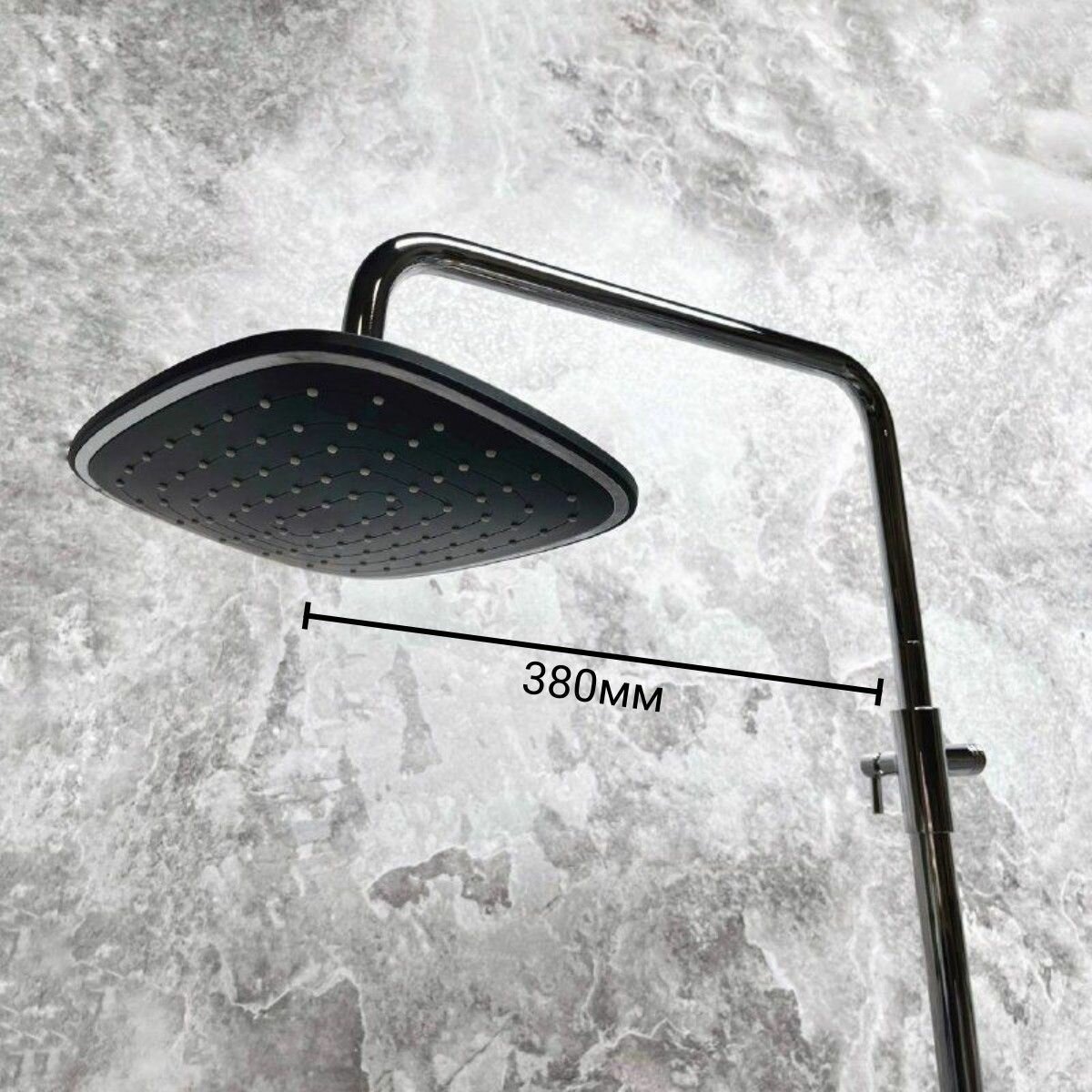 Душевая система (душевой комплект) с тропическим душем и поворотным изливомHaiba HB24805-7, излив служит переключателем на лейку, черный/хром