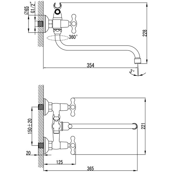 | Дополнительная информация | диаметр монтажных отверстий 65 мм; диаметр лейки 75 мм; тип струи Rain (дождь); угол поворота кран-буксы 180 градусов; угол поворота излива 360 градусов |