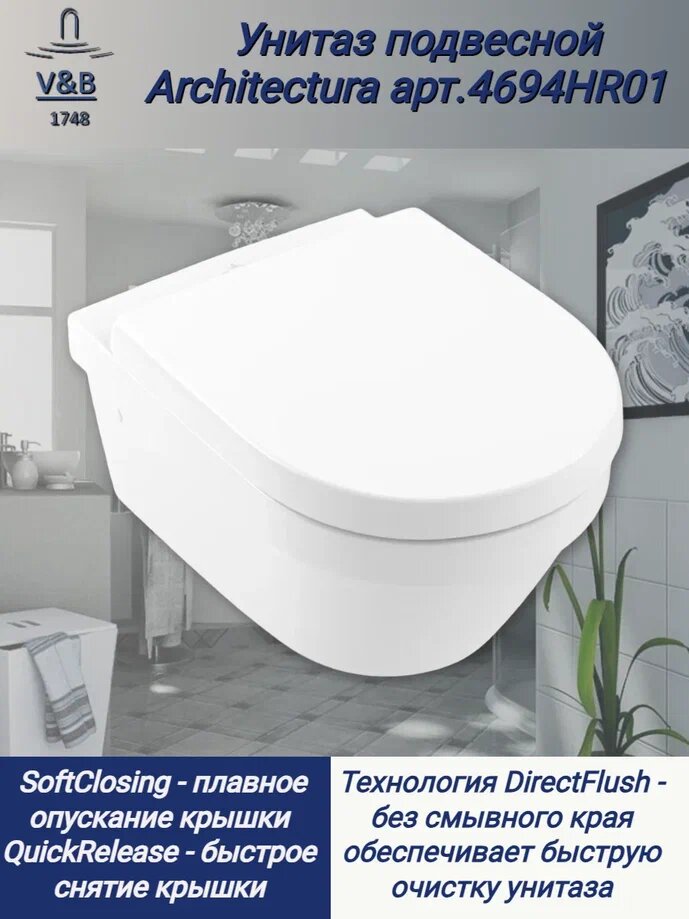 4694HR01 VILLEROY&BOCH Architectura Унитаз подвесной, с крышкой микролифт, цвет: белый