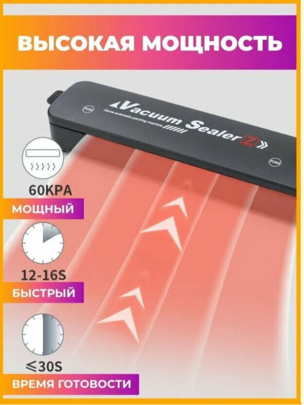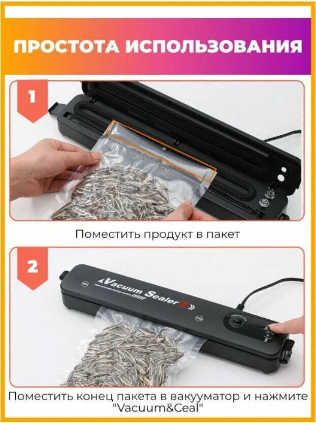 Вакуумный упаковщик Vacuum Sealer для продуктов / Запаиватель / Вакууматор для продуктов / Запайщик пакетов интересное: