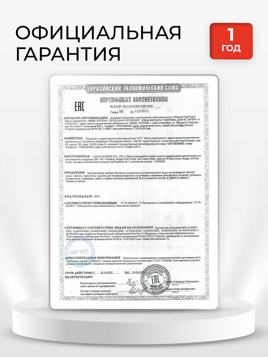 | Безопасность | блокировка включения без воды / блокировка крышки / отключение при снятии с подставки |