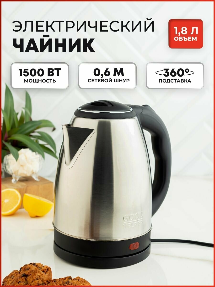 Чайник электрический GOODHELPER KS-18B04 1,8 л, 1500 Вт, серебристый/черный