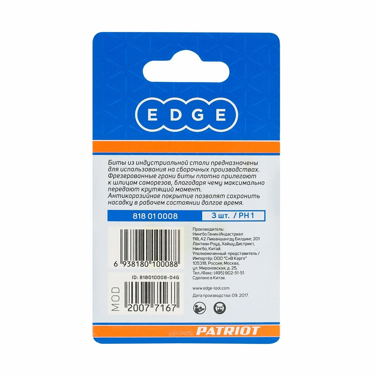 Бита EDGE by PATRIOT PH1, сталь S2, длина 25 мм, 3шт в блистере 818010008
