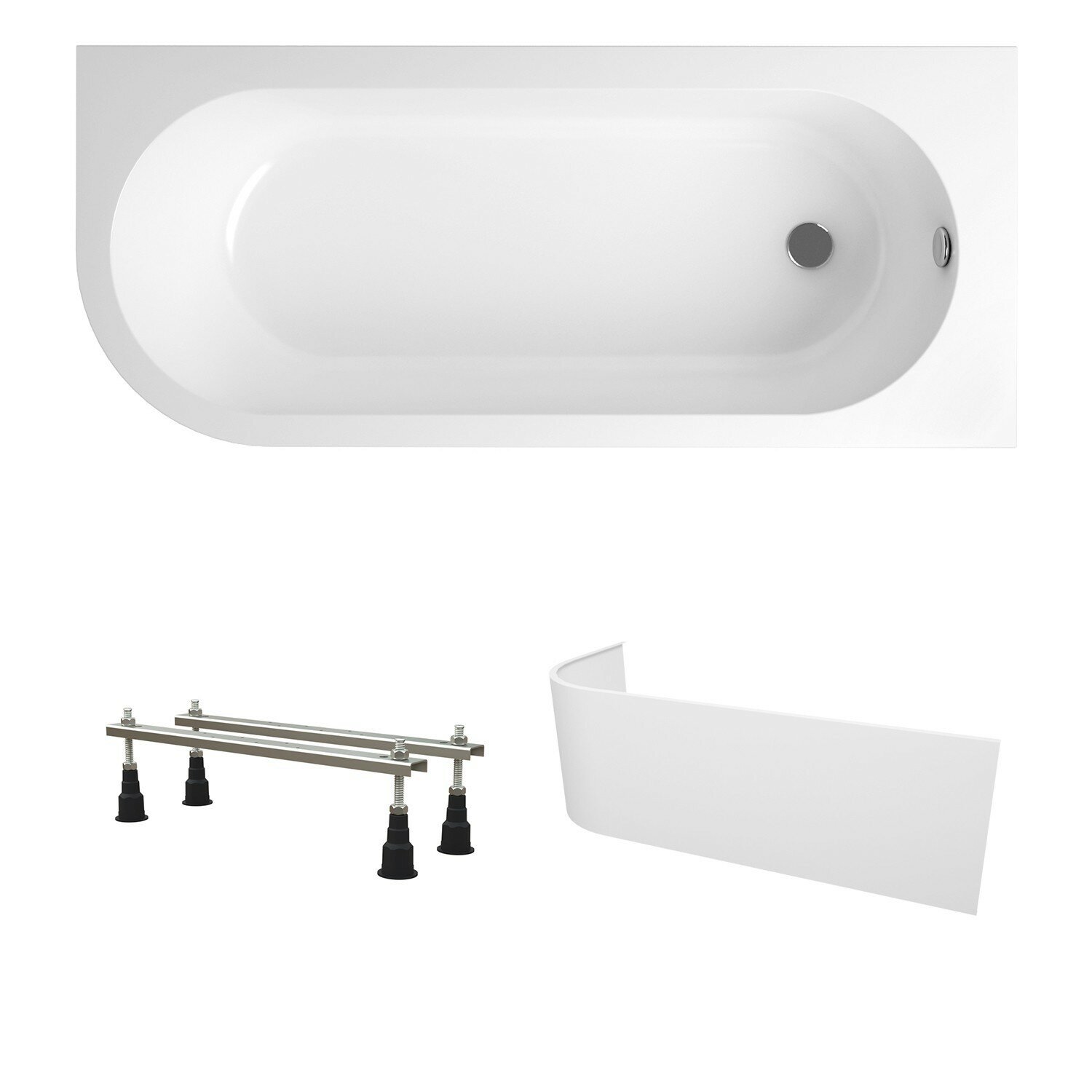 Пристенная ванна акриловая 170x75 Lavinia Boho Art S2-37080075 в наборе 3 в 1: полукруглая ванна 170 x 75 см, ножки, экран