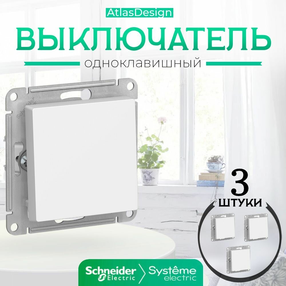 Купить Выключатель Systeme Electric Atlas Design 1-клавишный, ATN000111 Белый - 3 шт.