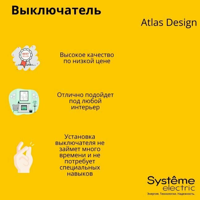 Выключатель Systeme Electric / Систем Электрик AtlasDesign, 10АХ схема 1, белый одноклавишный, ATN000111 / переключатель