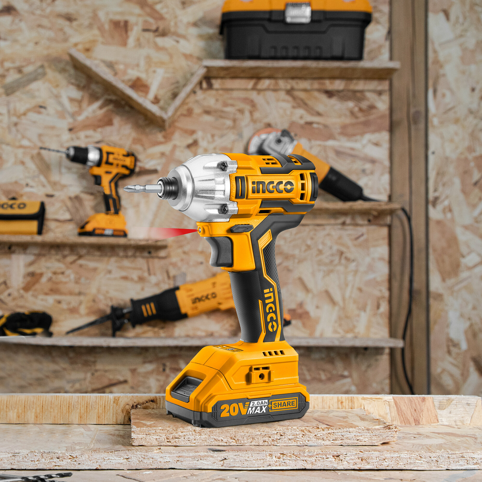 Шуруповерт INGCO CIRLI2002 импульсный бесщеточный Li-lon 20.0 В, 2 АКБ 2 Ач, 170Нм, патрон 1/4
