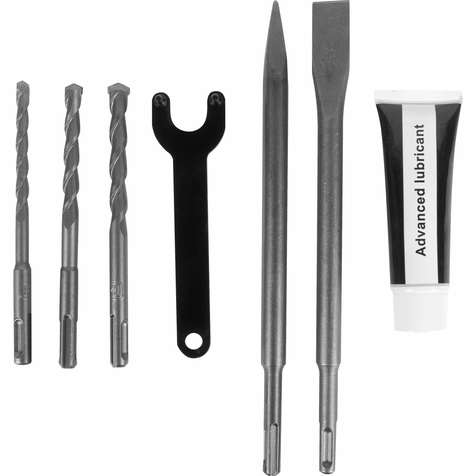 | Комплектация | дополнительная рукоятка, смазка, набор насадок, ключ, пылеулавливатель, кейс |