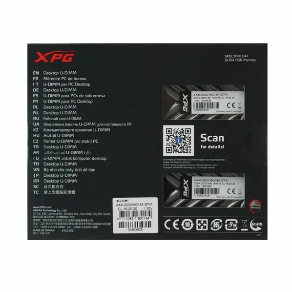 СохранитьAdata DDR4 32Gb (2x16Gb) 3200MHz pc-25600 XPG Spectrix D41 RGB Grey (ax4u320016g16a-dt41) AX4U32001 . интересное: