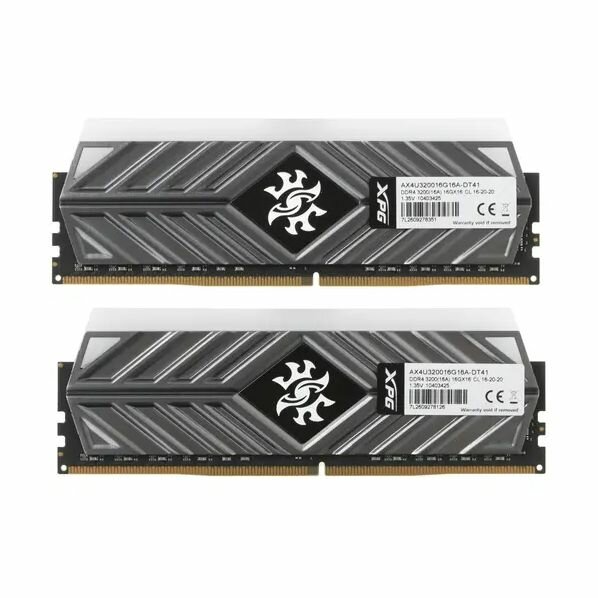 Модуль памяти DDR4 32GB (2*16GB) ADATA AX4U320016G16A-DT41 XPG SPECTRIX D41 tungsten grey PC4-25600 3200MHz CL16 радиатор 1.35V