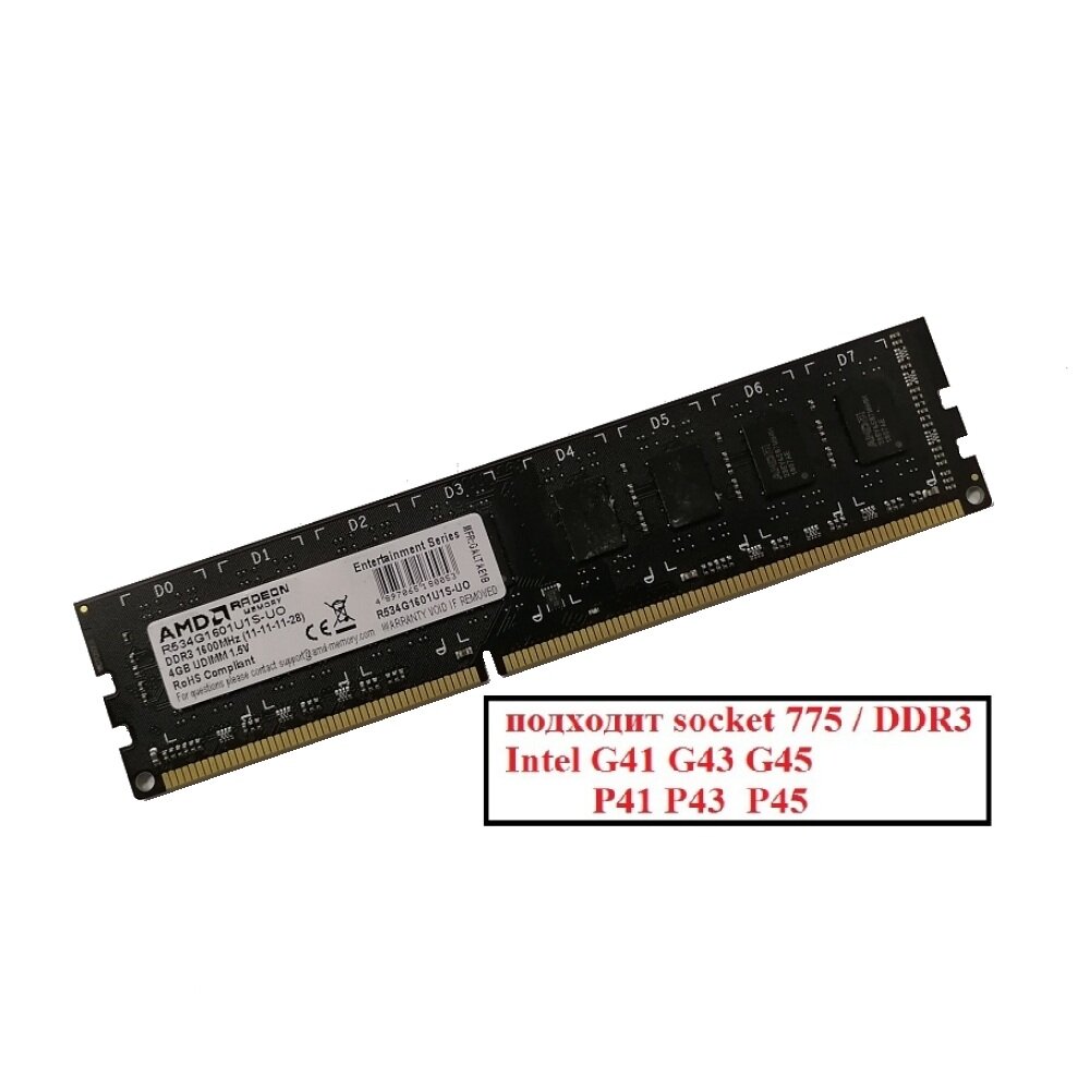 AMD 4 ГБ DDR3 1600 МГц DIMM CL11 R534G1601U1S-UO