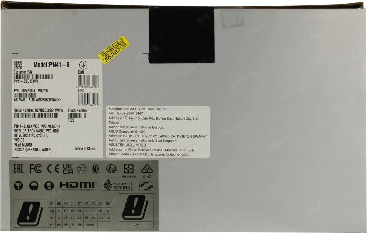 ASUS PN41-B 7B WOC/N4500/NM/NH/N/NO/000/E/VEN/RU/NOS/C PN41-BBC080MC 90MR00IA-M00800