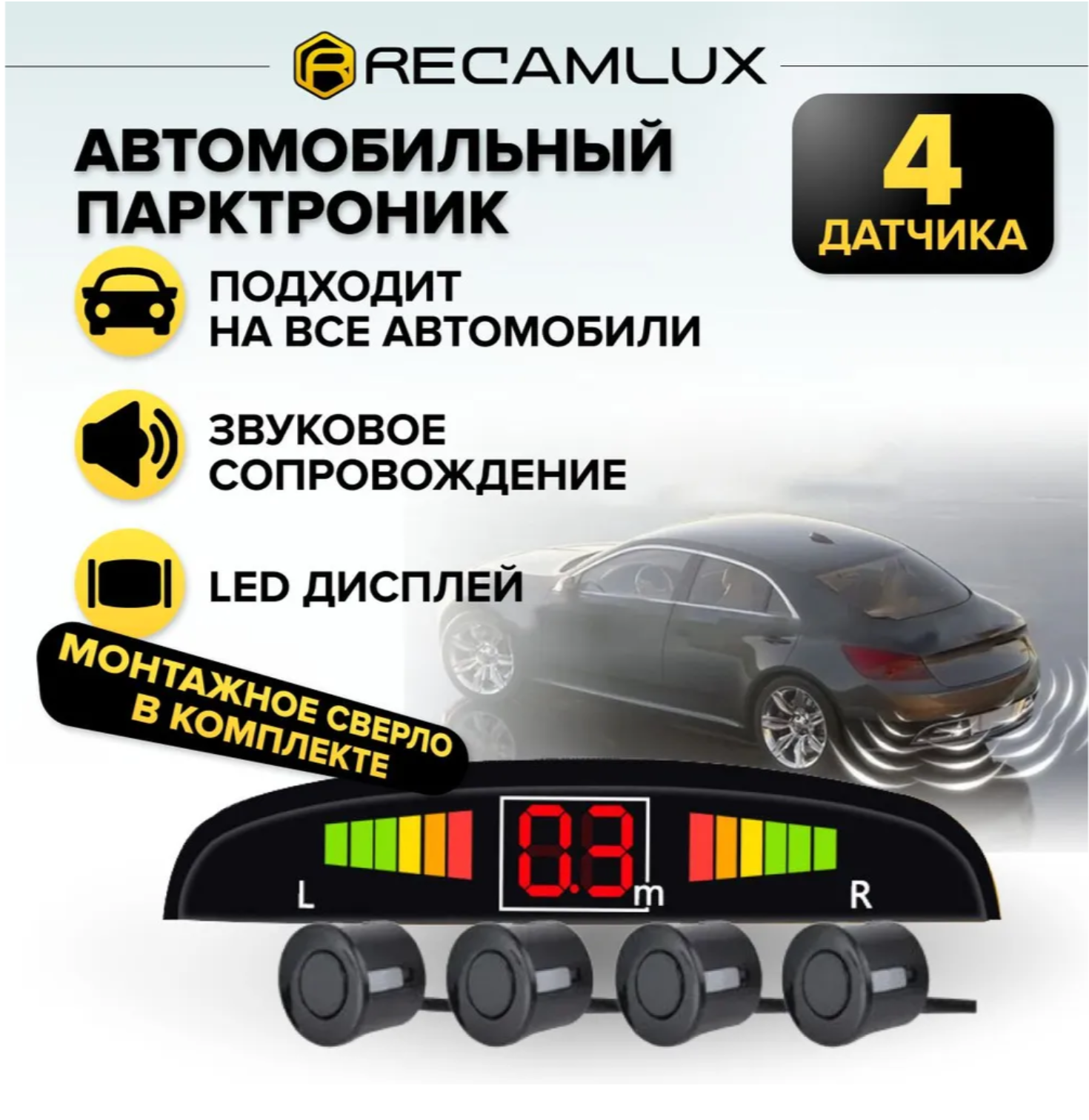 RecamLux / Парктроник задний чёрный - Парковочный радар передний для автомобиля - Парковочная система 4 датчика интересное: