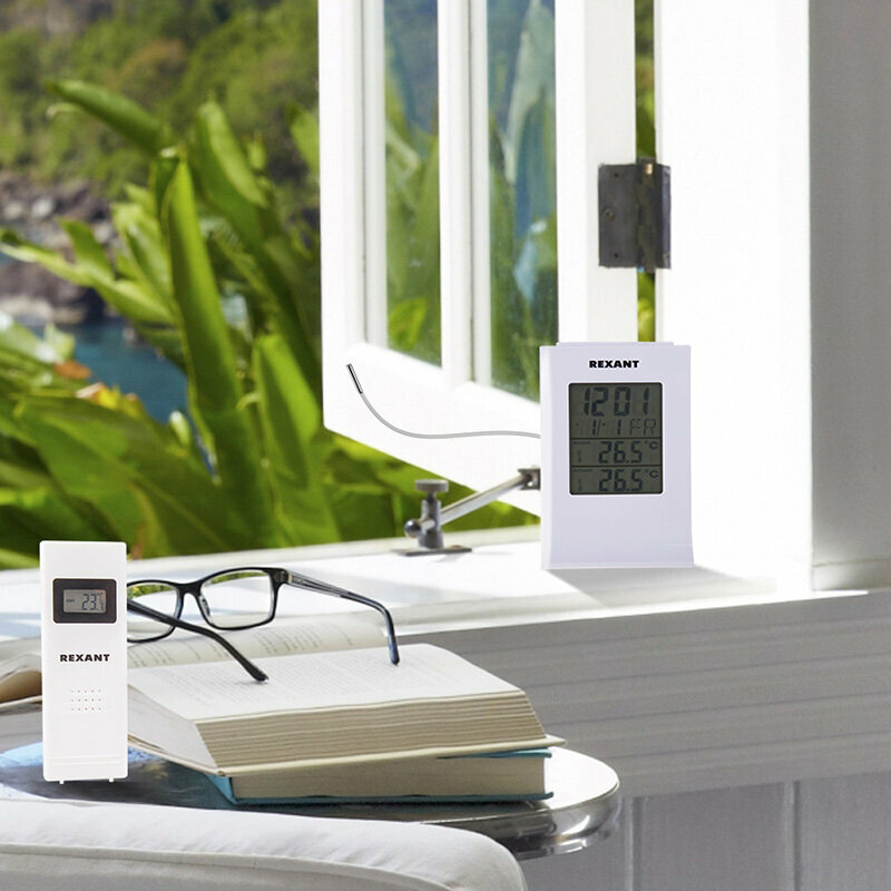 Метеостанция Rexant с часами и беспроводным выносным датчиком
