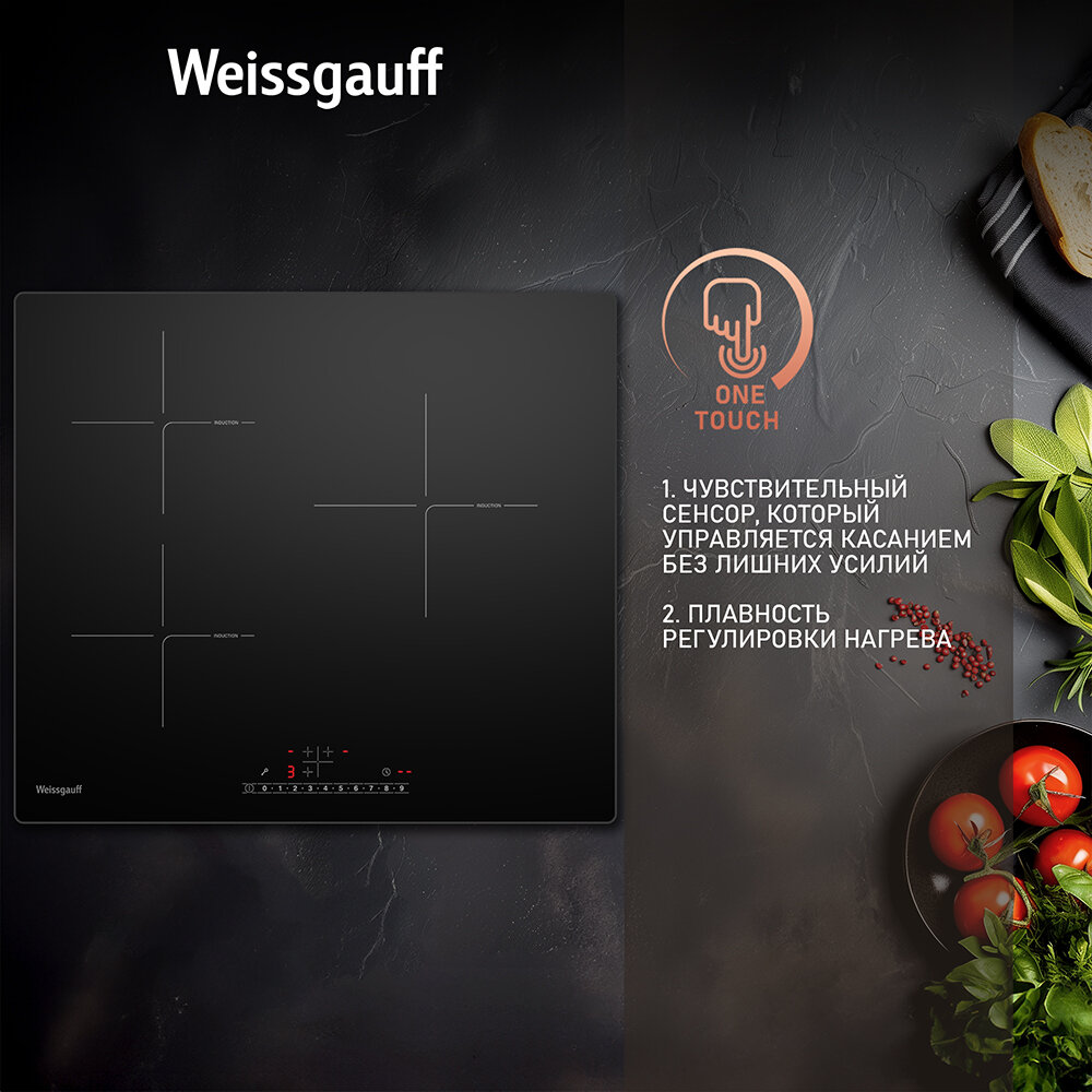 Индукционная варочная панель с инвертором и слайдером Weissgauff HI 630 BSC,3 года гарантии, 3 конфорки, 59 см ширина