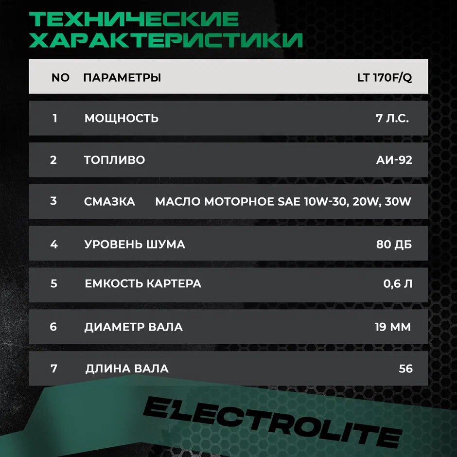 Двигатель на мотоблок ELECTROLITE LT 170F/Q (7 л.с., Вал 19мм) интересное: