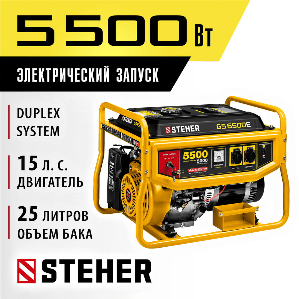 STEHER 5500 Вт, бензиновый генератор с электростартером (GS-6500E) интересное:
