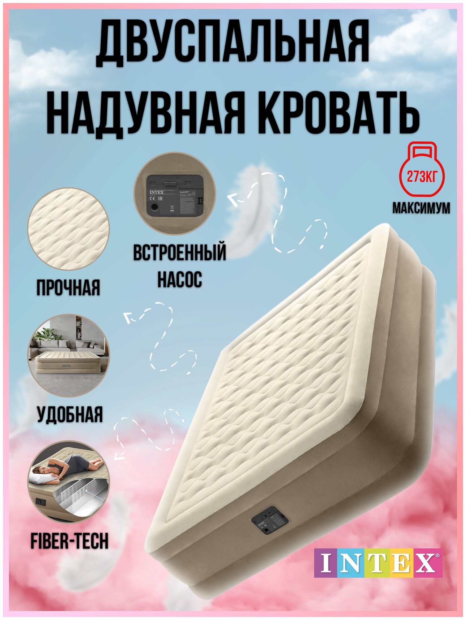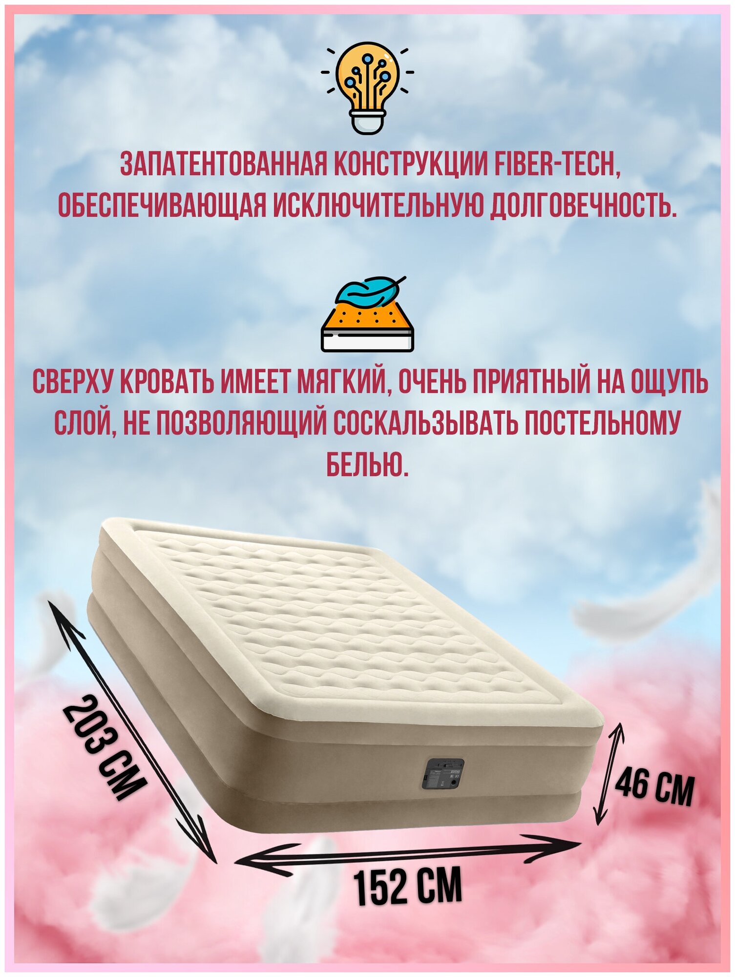 Двуспальная надувная кровать Intex 64428 Ultra Plush Airbed With Fiber-Tech + насос (152х203х46см)