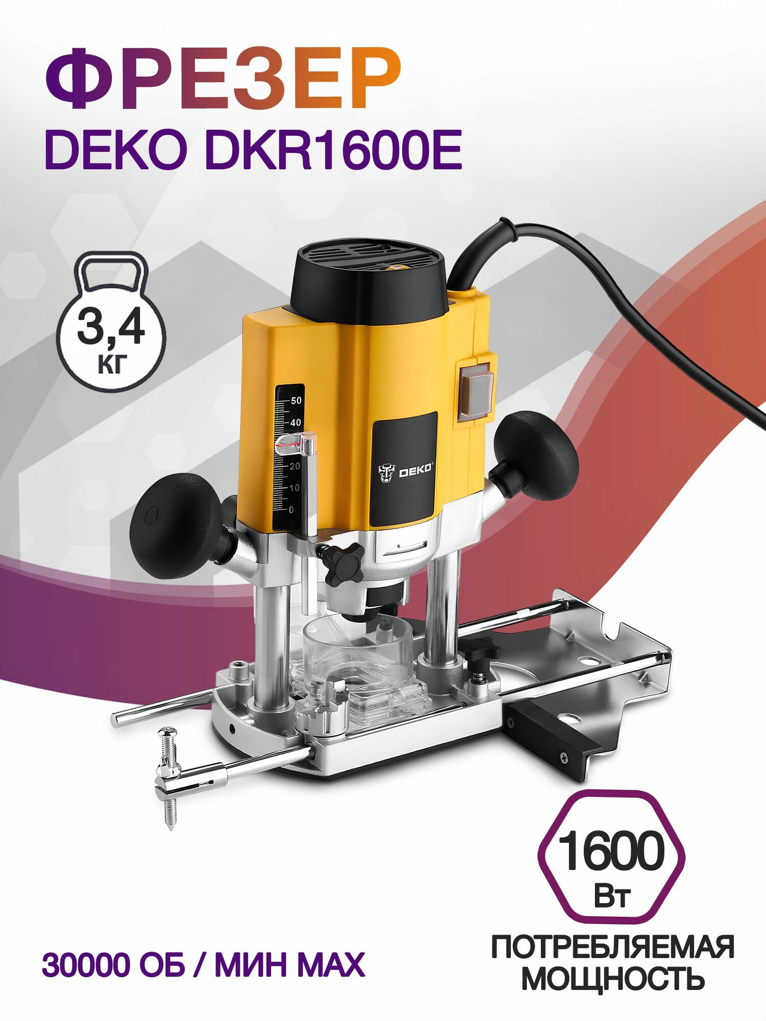 Фрезер Deko Dkr1600e 1600Вт 30000об/мин макс.ход:52мм 063-4193