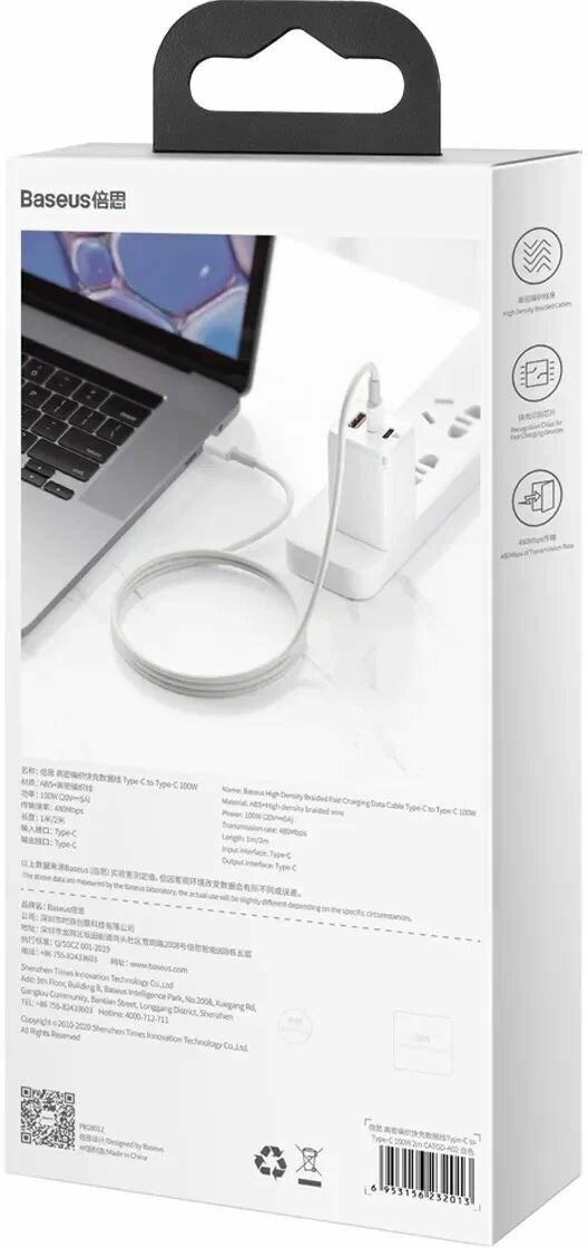 СохранитьКабель USB-C BASEUS High Density Braided, Type-C - Type-C, 5A, 1 м, белый интересное: