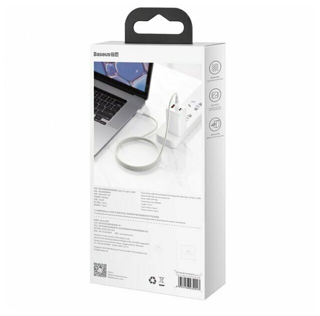 Кабель Baseus High Density Braided Fast Charging Data Cable Type-C to Type-C 100W 1m (CATGD-02) белый