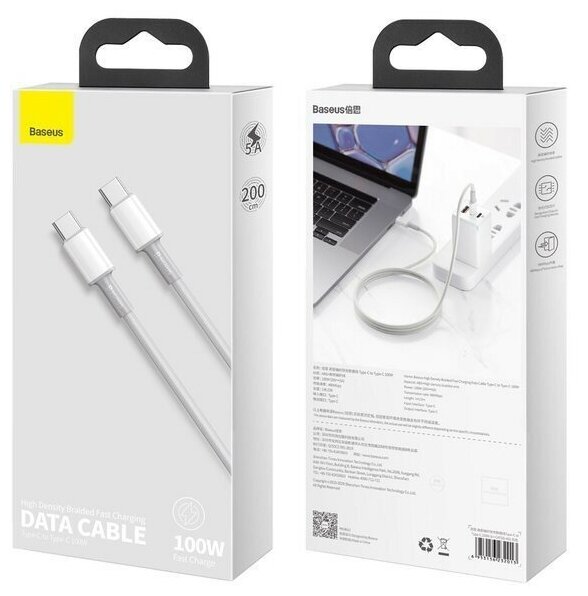 Купить Кабель USB-C BASEUS High Density Braided, Type-C - Type-C, 5A, 1 м, белый