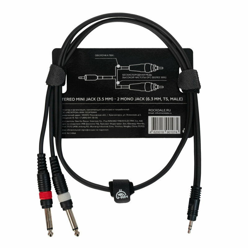 | Разъемы | mini jack 3.5 mm (M) - 2 x jack 6.3 mm mono (M) |