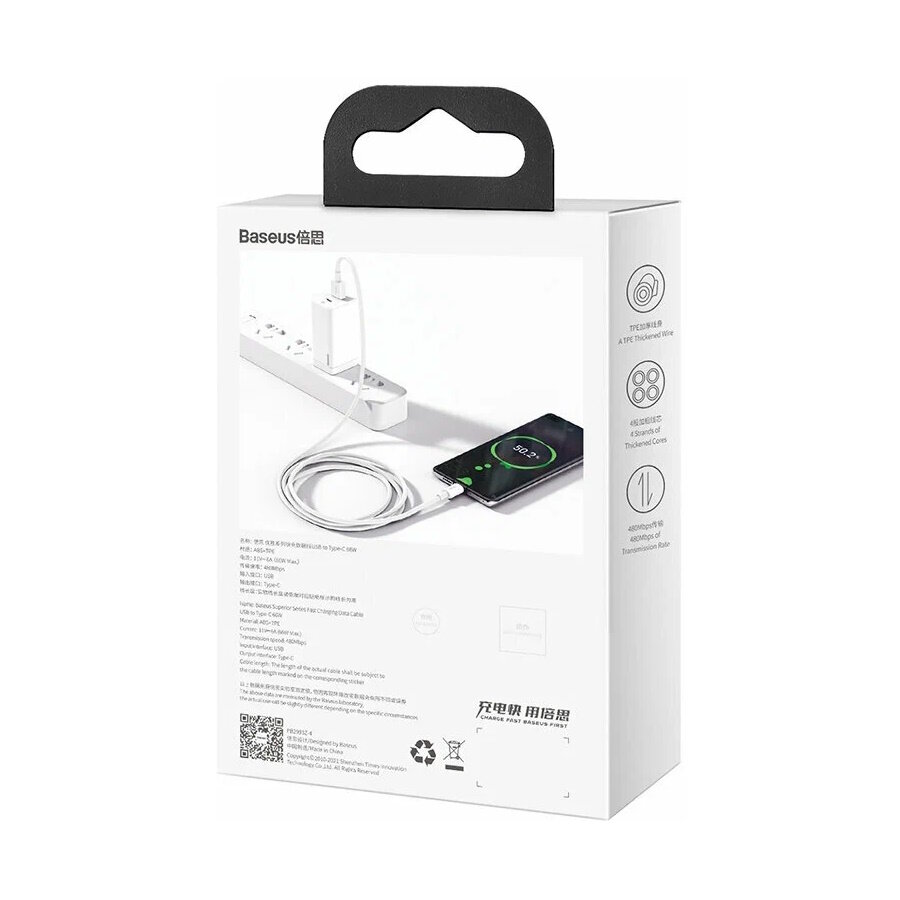 Кабель USB BASEUS Superior Series Fast Charging, USB - Type-C, 6A, 1 м, белый