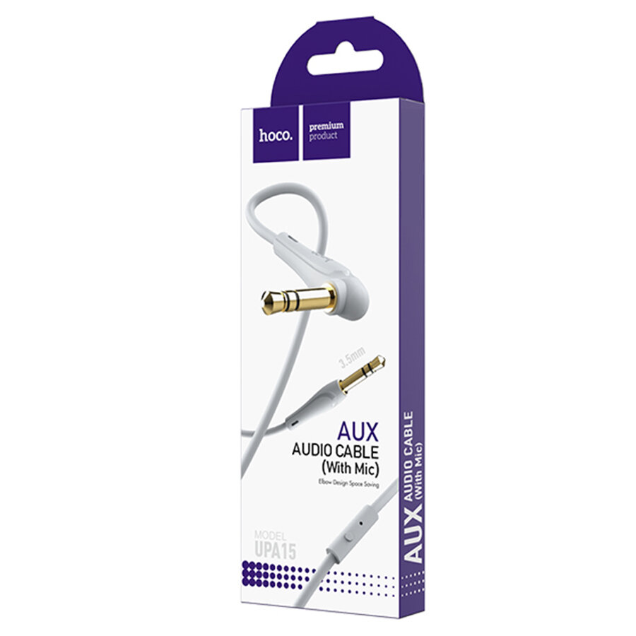 Аудиокабель AUX 3.5мм Hoco UPA15 1м с микрофоном угловой силиконовый белый