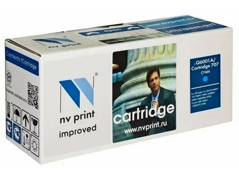 Картридж NV Print совместимый Q6001A/707 Cyan универсальные для HP/Canon Color LaserJet 1600/ 2600n/ 2605/ 2605dn/ 2605dtn/ LBP 5000 i-Sensys Laser Shot/ 5101 (2000k)