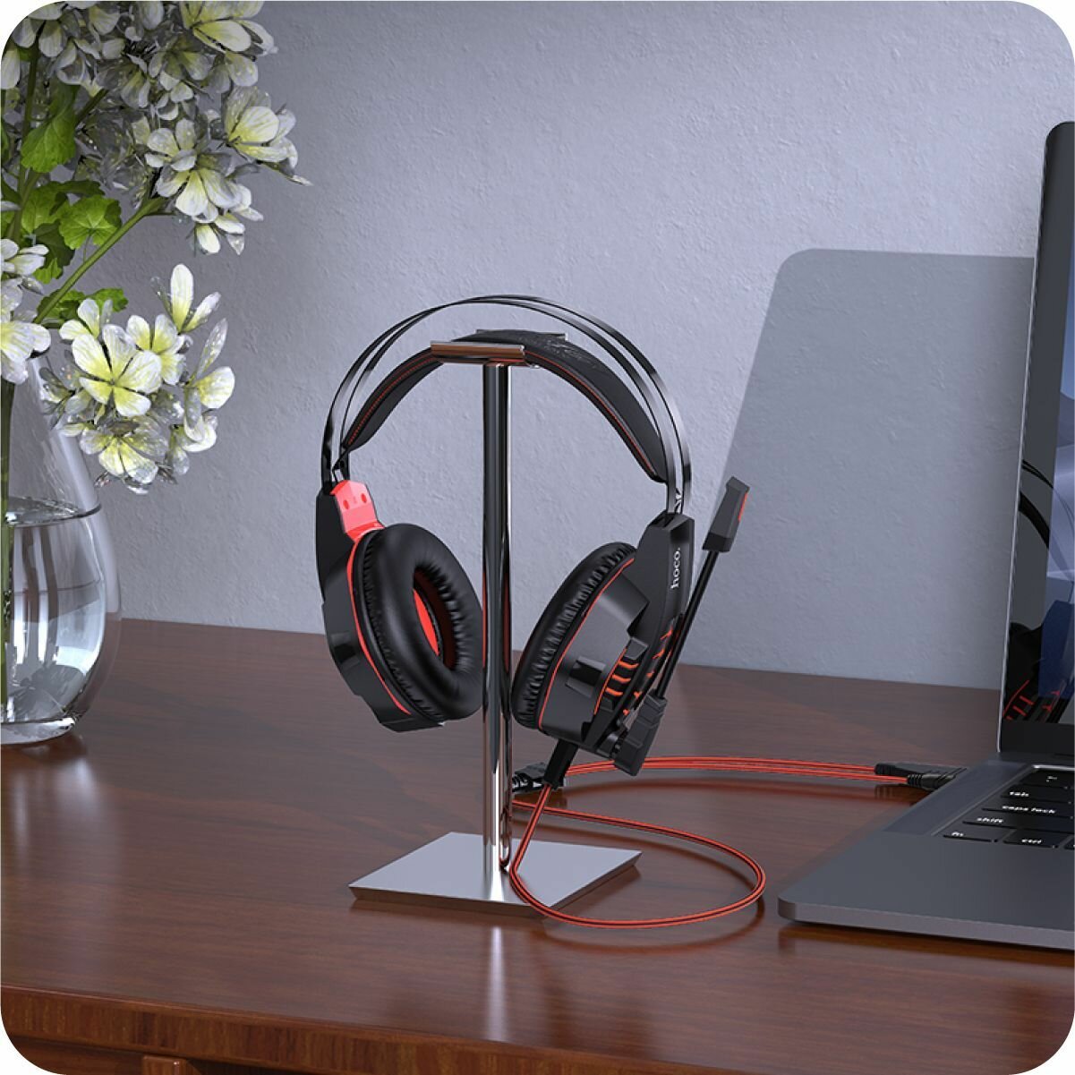 Наушники Hoco W102, игровые, полноразмерные, микрофон, USB, 3.5мм, 2 м, красные