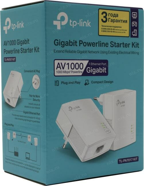 TP-Link TL-PA7017 KIT AV1000 Комплект гигабитных адаптеров Powerline .