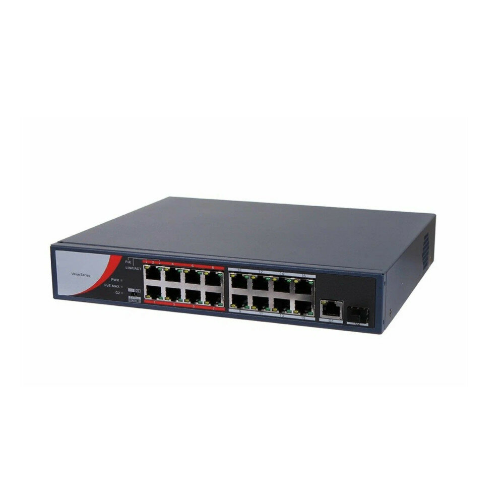 Коммутатор PoE HIKVISION DS-3E0318P-E/M(B) 16хRJ45 100M PoE с грозозащитой 6кВ/Uplink порт 1000М Ethernet/Uplink порт 1000М SFP, бюджет PoE 130Вт, про