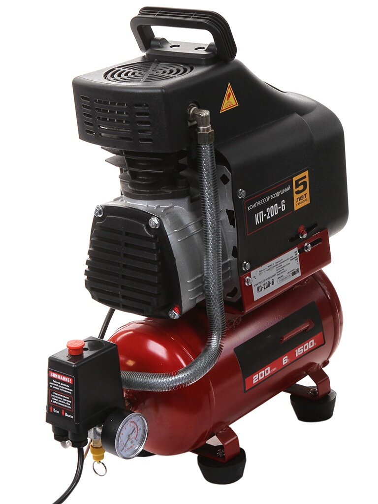ЗУБР 1500 Вт, 200 л/мин, 6 л, поршневой, безмасляный, компрессор воздушный КП-200-6 Мастер