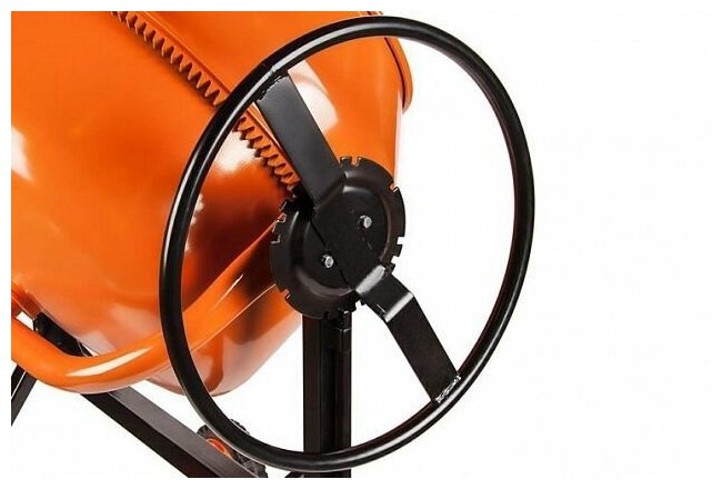 | Плюсы: | Чугунный венец. Большой объем. Колеса для транспортировки. Легкое опрокидывание барабана с готовой смесью. |