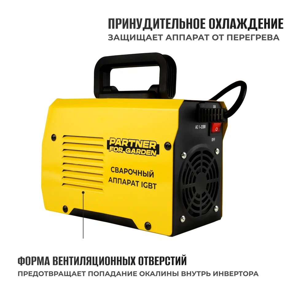 Сварочный аппарат инверторный Partner for garden MMA-200Р ( 20-200А,1.6-4 мм, дисплей ) сварка электродом от низкого напряжения от 140 вольт интересное:
