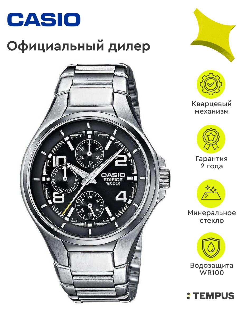 Наручные часы CASIO EF-316D-1A, серебряный, черный