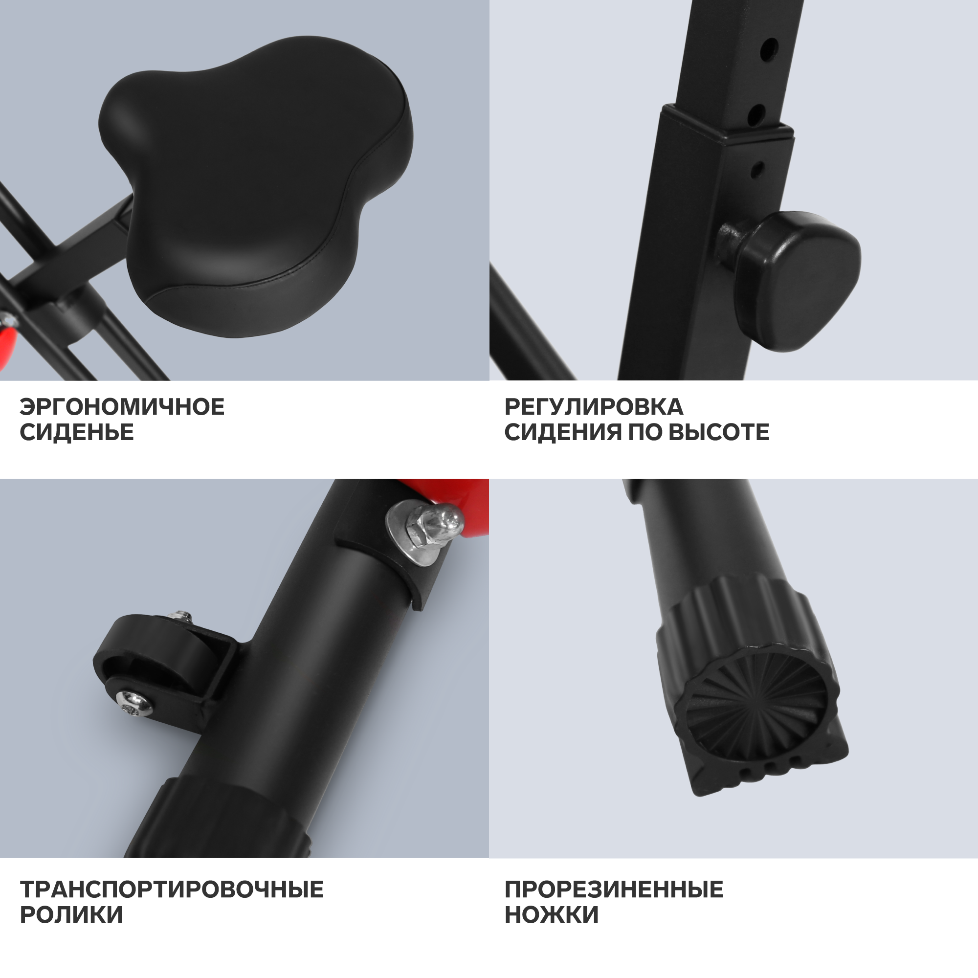 | Особенности конструкции | регулировка сидения по вертикали / транспортировочные ролики/колеса |