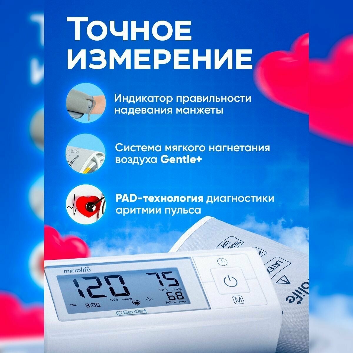 Тонометр Microlife BP A1 Basic автоматический с технологией Gentle+, без адаптера, манжета M