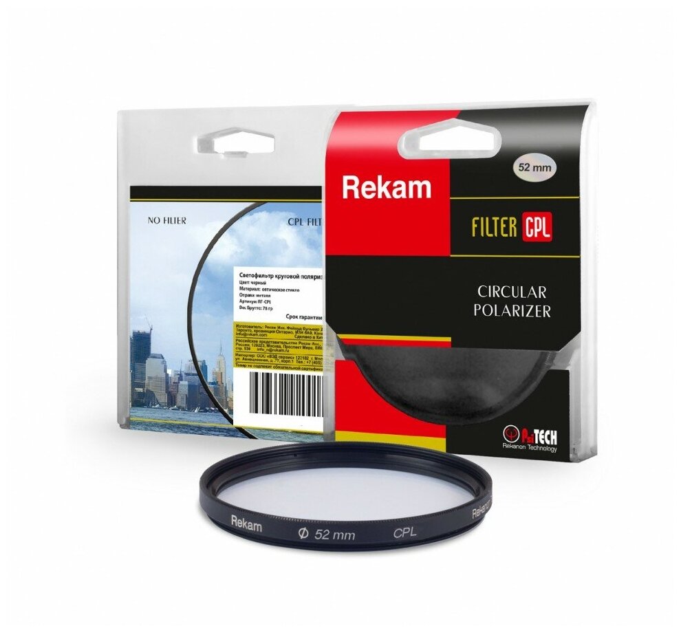 Светофильтр круговой поляризации Rekam RF-CPL52 для объектива, 52 мм