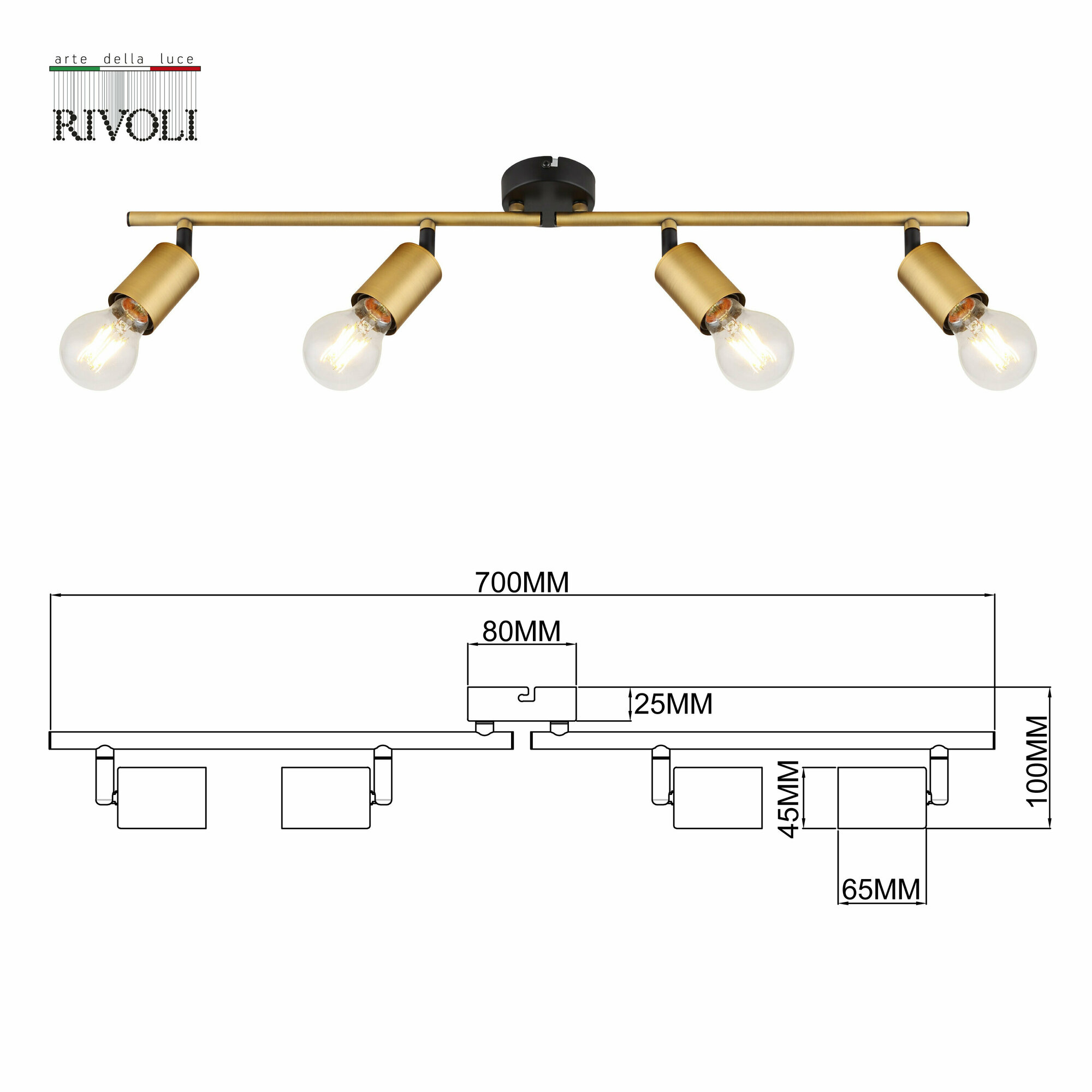 Светильник настенно-потолочный спот Rivoli Jordana 7038-704 4 х Е27 40 Вт поворотный