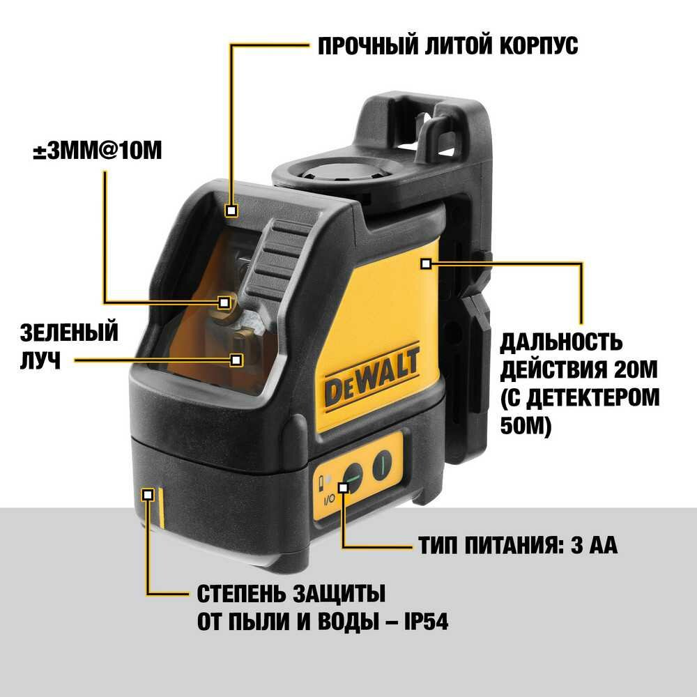 DeWALT DW088CG Нивелир лазерный с зеленым лучем (+/-0.3 мм/м,верт/гориз\n20 м/50 м) в чем.