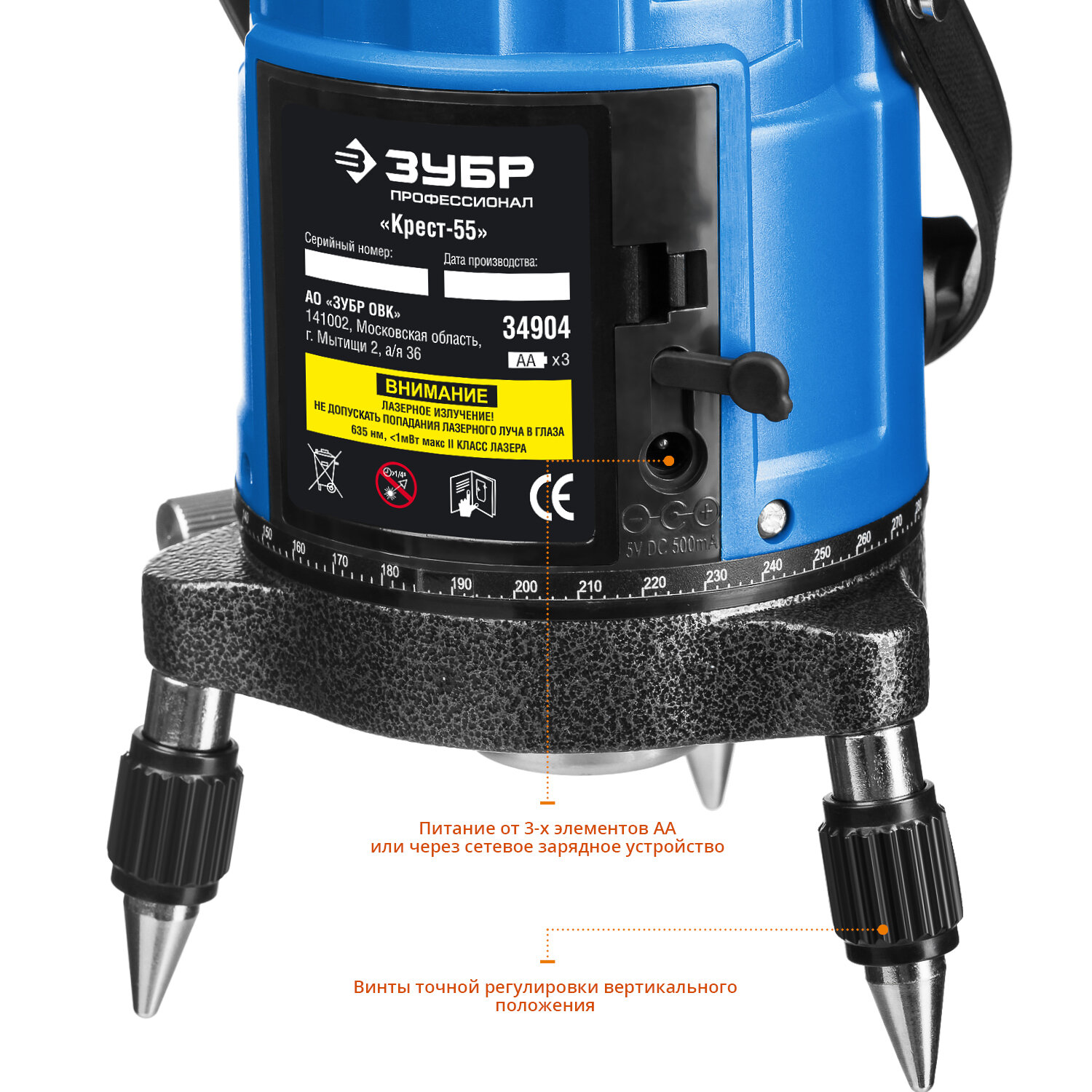 Лазерный линейный нивелир Зубр Крест 55 Профессионал 34904