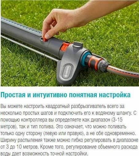 | Плюсы: | Качество сборки, Gardena есть Gardena. Настраивается по ширине полива, наклону, давление тоже можно прикрутить. |