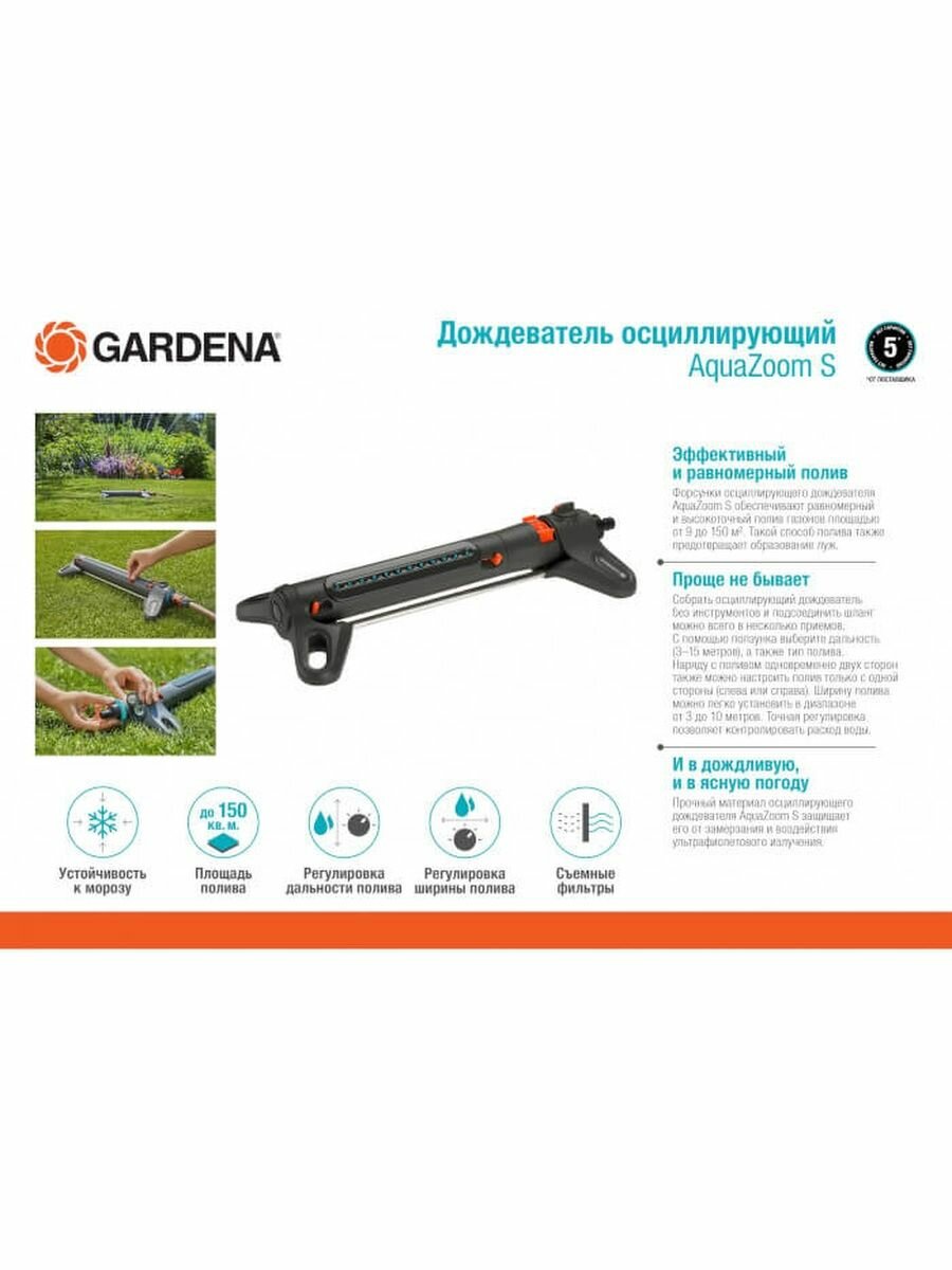 Ниже Вы можете прочитать отзывы на Осциллирующий дождеватель Gardena AquaZoom S 18710-20.000.00, ознакомится с подробными характеристиками, посмотреть интересные обзоры и фотографии на Осциллирующий дождеватель Gardena AquaZoom S 18710-20.000.00.