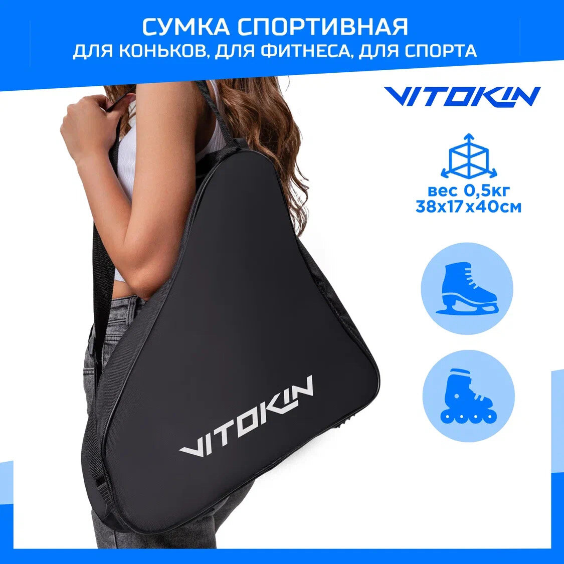 Ниже Вы можете прочитать отзывы на Сумка чехол для хоккейных и роликовых коньков VITOKIN, цвет черный, ознакомится с подробными характеристиками, посмотреть интересные обзоры и фотографии на Сумка чехол для хоккейных и роликовых коньков VITOKIN, цвет черный.