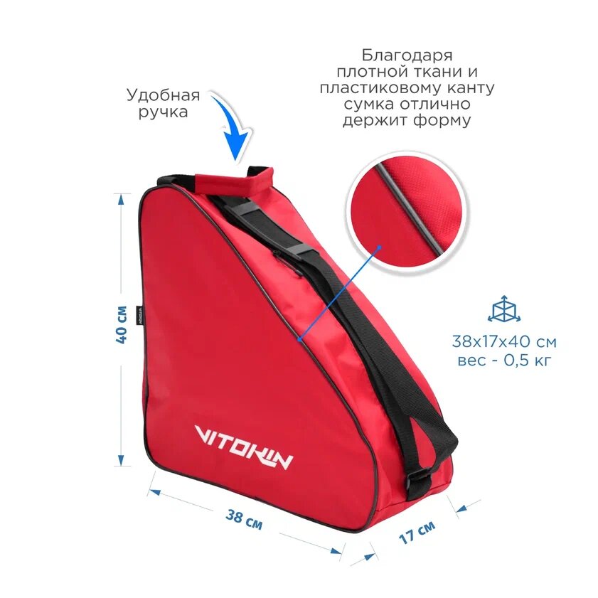 Ниже Вы можете прочитать отзывы на Сумка чехол для хоккейных и роликовых коньков VITOKIN, цвет красный, ознакомится с подробными характеристиками, посмотреть интересные обзоры и фотографии на Сумка чехол для хоккейных и роликовых коньков VITOKIN, цвет красный.